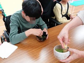 お抹茶と和菓子をいただいている時の子どもたちの笑顔や、うっとりとした表情が、とても印象的でした。そして、貴重な体験もさせていただきました。みどり園の皆さん、どうもありがとうございました。