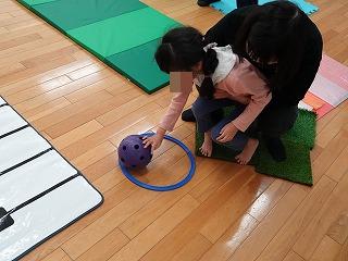 「私もがんばる!」と2人目も挑戦。ボールを手で動かすミッションも追加されました。最後はしっかりとゴールして、おもちゃにたどりつきました。2人ともよく頑張りましたね。朝の「小1サーキット」でした。