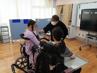 高等部の生徒が校長室へ来て、「こっている所はありませんか?」と聞いてくれました。「肩がこっています。」と答えると、肩のマッサージをしてくれました。ずいぶん楽になりました。ありがとう!