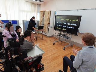 ALTの先生への質問コーナーでは、先生の出身国や好きなスポーツや色、果物などを聞いて英会話を楽しみました。3人ともしっかりと英語を話せるのがすごいと思いました。