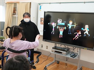 お休みの日の出来事などを動画で見せてくれました。からだの学習では、新しいことにも挑戦して頑張っているようです。