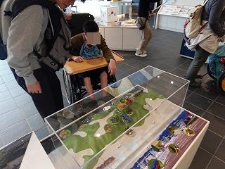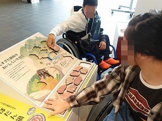 高等部の生徒が、校外学習で「兵庫県立兵庫津ミュージアム」を訪れました。この博物館は最近できた施設で、とても綺麗です。兵庫の歴史に焦点を当てた展示があり、楽しみながら学べます。施設に入るなり、おもしろそうな物を発見!「あっ六甲山だ!」「大きなタマネギ!」などと反応する生徒たち。大タマネギの皮をむいてみましたが、目は痛くならなくて良かったです。