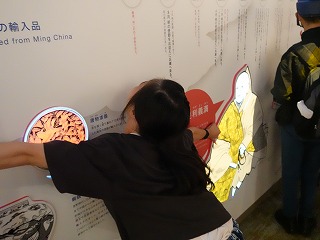展示には、最新の技術が取り入れられていて、タッチするとお金や紅葉が降り注いだり、足利義満さんが現れたり、楽しい工夫がいっぱいでした。中には欲張ってあれもこれも押して、板に張り付いている人もいましたよ。