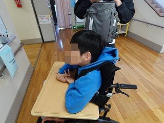 高等部の体験入学です。来年度、高等部への入学を予定している中学部3年生の2名が参加しました。いつもと違う高等部の教室に入って少し緊張気味の2人です。